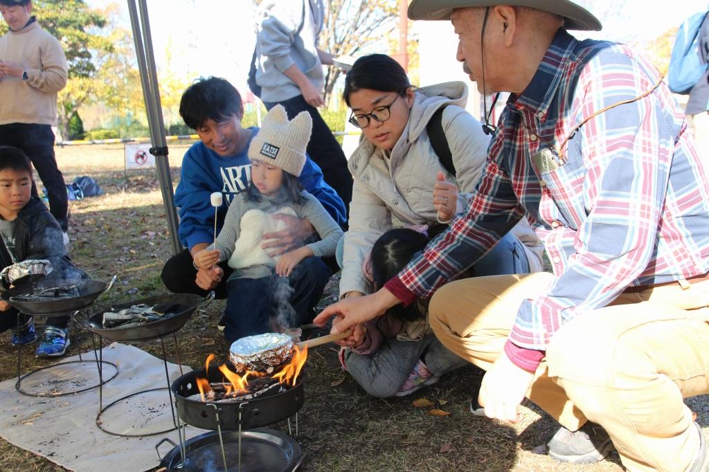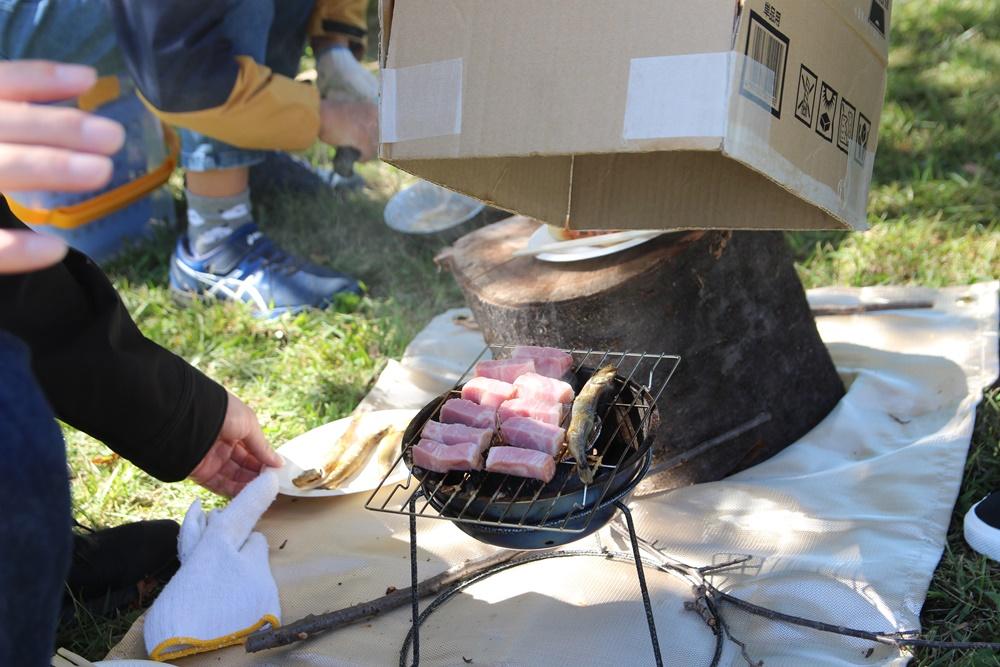焚き火で囲んでアウトドアクッキング体験