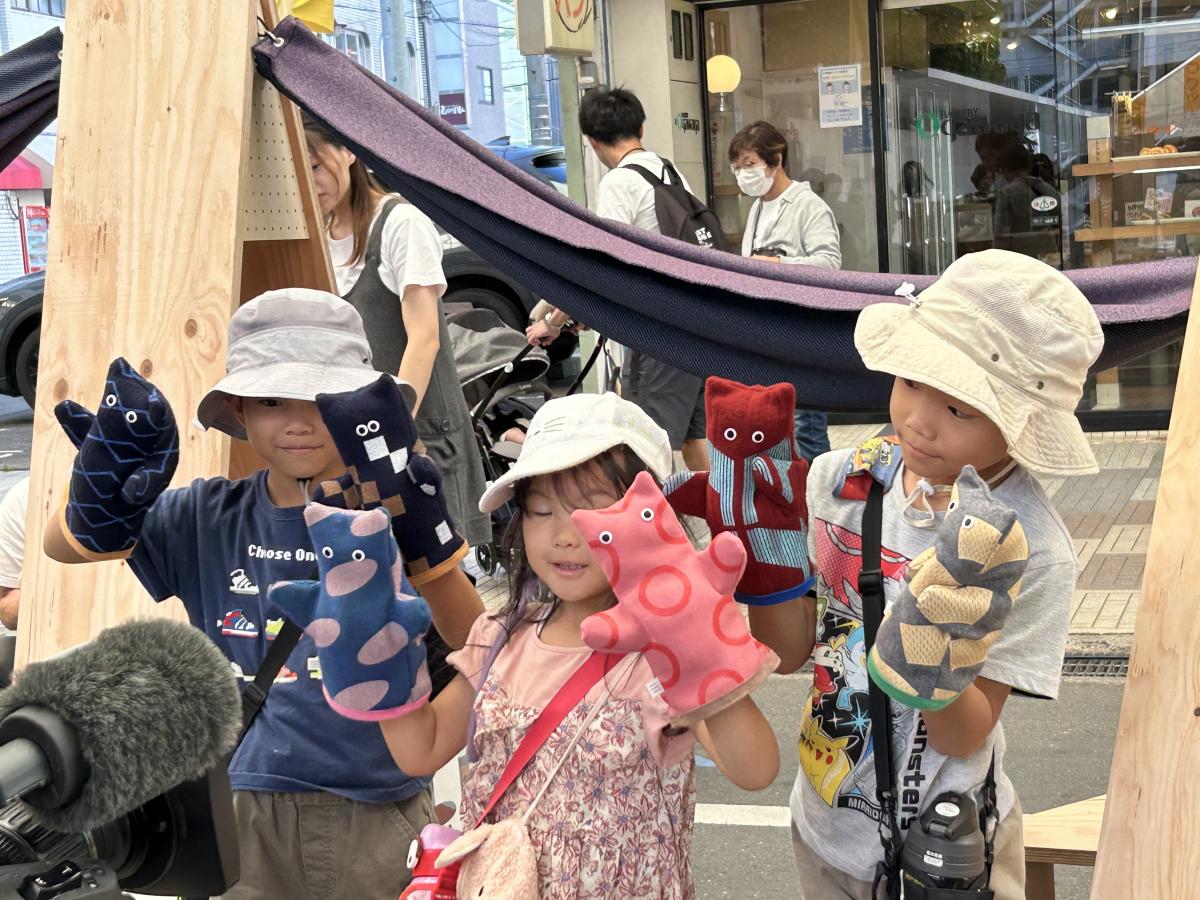 一宮の街並み要素から生まれた「パペット」たちが登場します。シアターに見立てたストリートファニチャーで一緒に楽しもう!