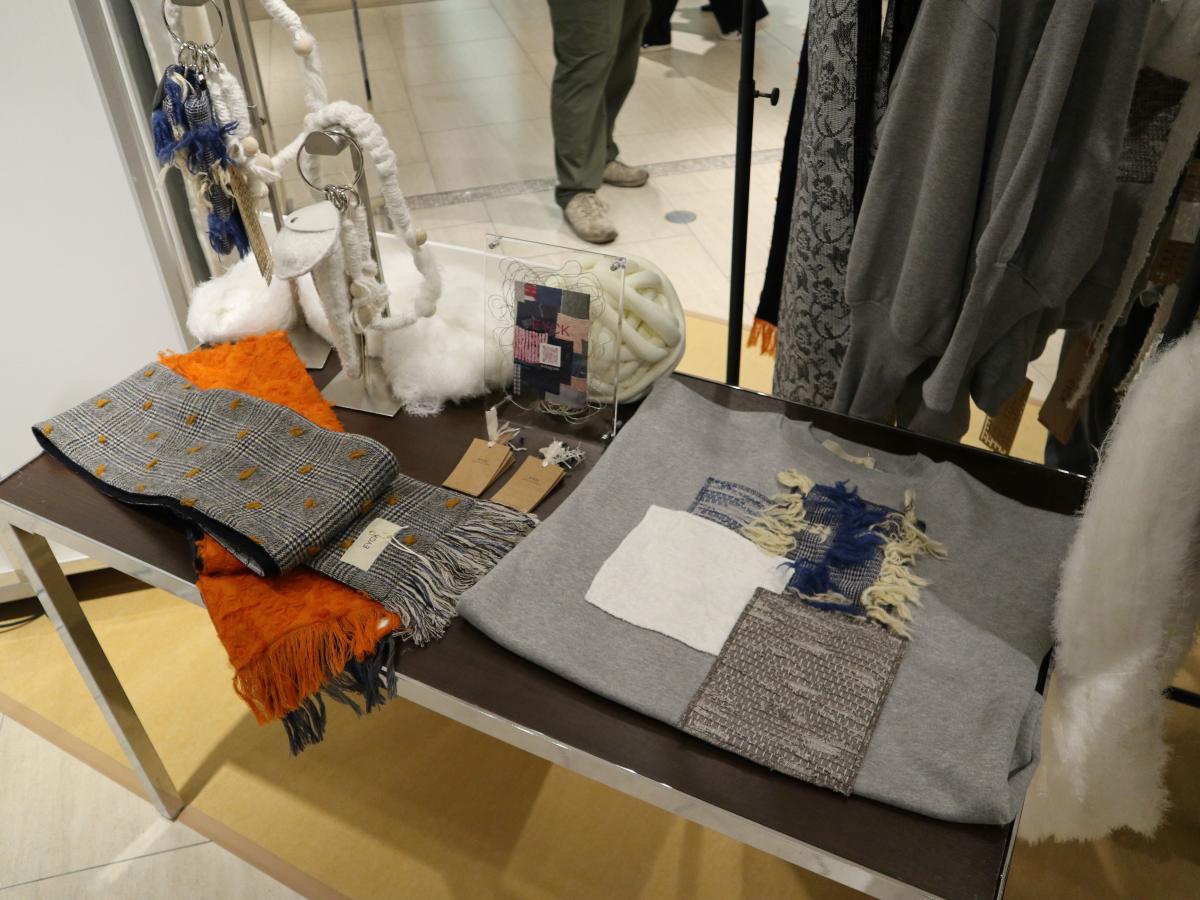 こちらも昨年に引き続いての開催。尾州産地で働く若手にフォーカスし、生地の展示や物販が行われていました。