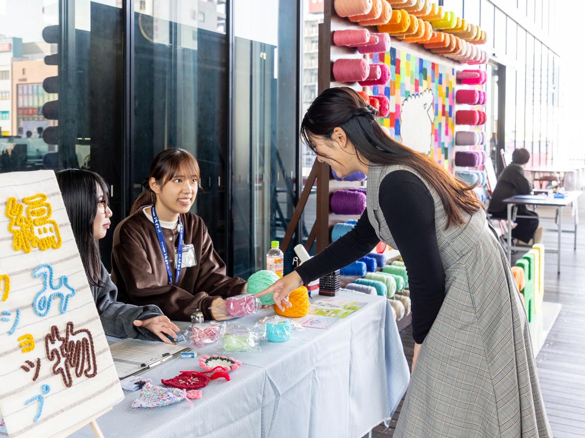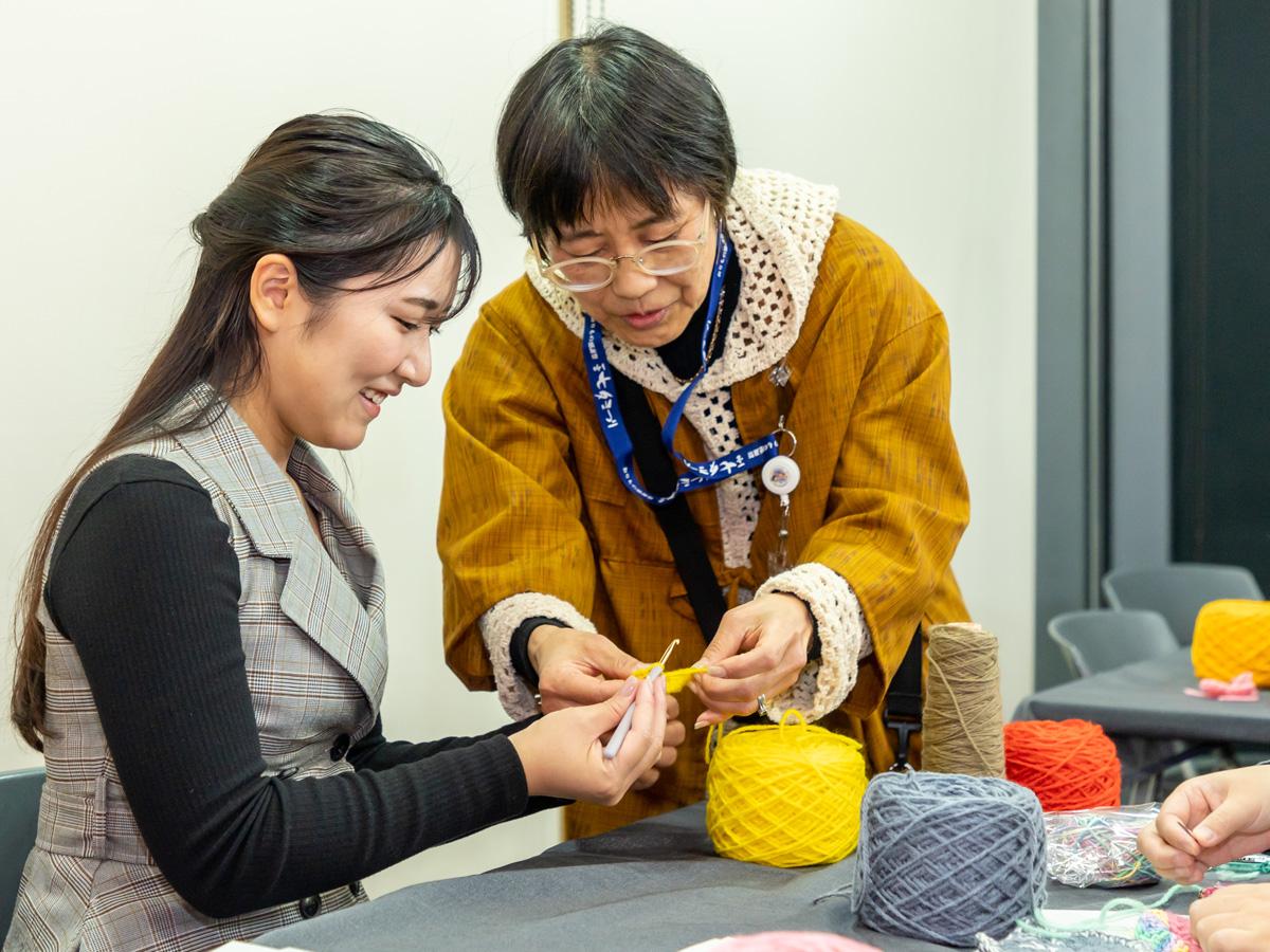 編み物ブームを追い風に企画された編み物ワークショップは、編み物初体験という女性たちが続々と参加。参加費無料で、編み物講師から丁寧に教えてもらえるとあって人気コンテンツとなっていました。