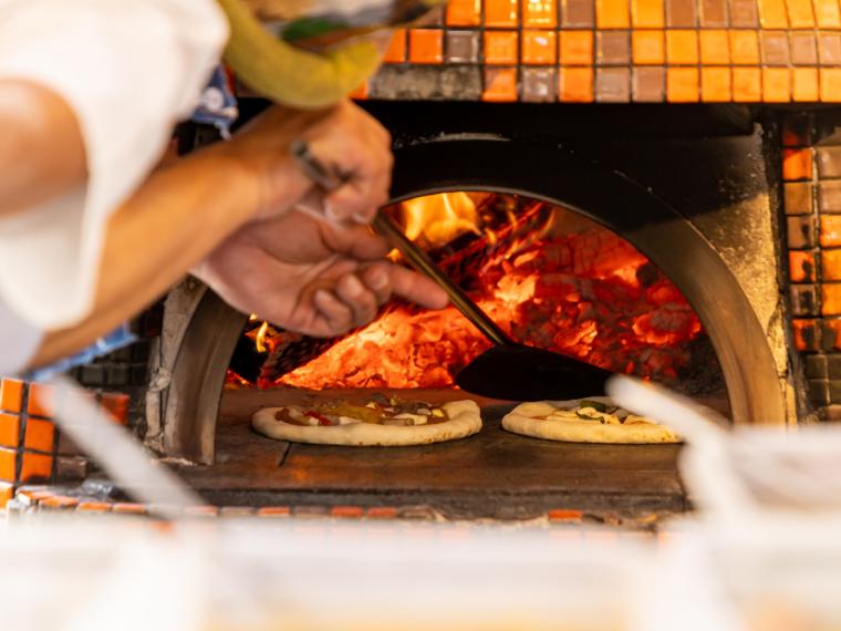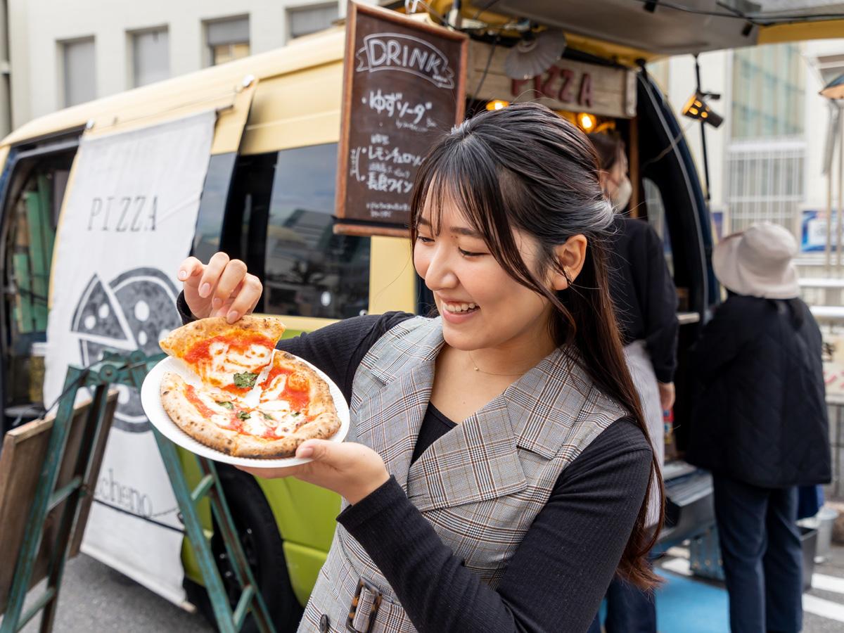 キッチンカーに設置された石窯でこんがり焼き上げられた本格ピザをひと口頬ばれば、思わず「ボォーノ!」と声を上げたくなるおいしさです。