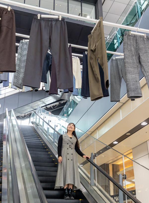 一宮駅直結のi-ビルでは、この日、エスカレーター上の吹き抜け空間に突如として50着のパンツが現れました。