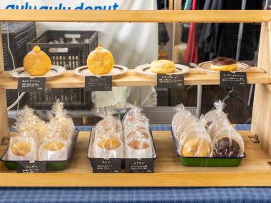会場には、もっちり食感のイーストドーナツ専門店「gulu gulu donut(グルグルドーナツ)」、スノーボーダーのオーナーが自身のライフスタイルに落とし込んだプロダクトを展開する「Transition Equipment(トランジション エキップメント)」、季節の装いに合う色や素材のアクセサリーを扱う「galleggiare(ガレジャーレ)」など、尾州の地で活動する“こだわり派”の企業・店・個人が集結。