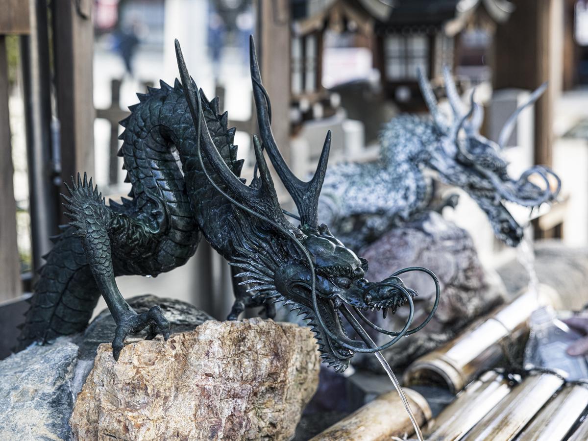 こちらは、手水舎です。この龍は寛永8年(1631)初代尾張藩主・徳川義直公が奉納したものと同型で、本物は宝物館に保管されています。さすが龍神伝説のある神社だけに、この「吐水龍」は、境内にいくつか見られます。