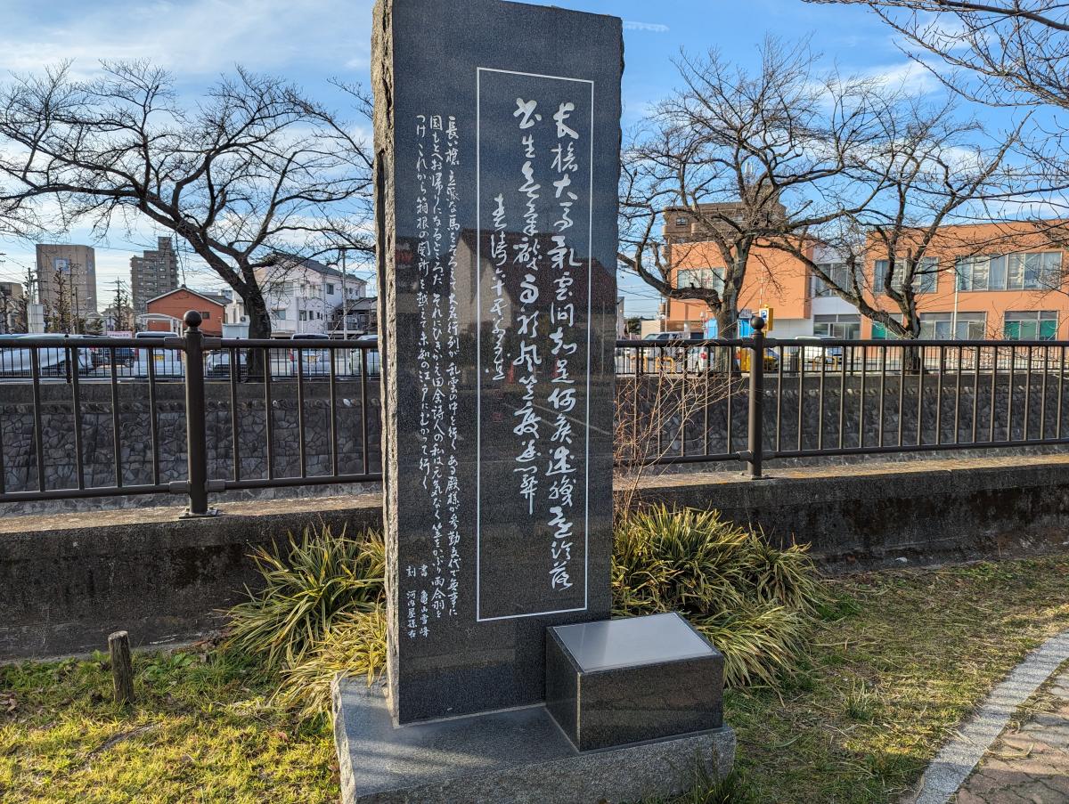 大江川東側のほとり(天道橋北側)に漢詩の石碑(平成元年建立)がある。